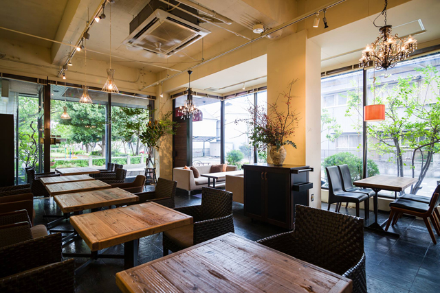藤枝市駅前にある 藤枝パークインホテル様の1階にある、野菜がおいしいホテルのレストランとして評判なcomodo「コモド」さんへikpカフェテーブル等の納品をさせて頂きました。