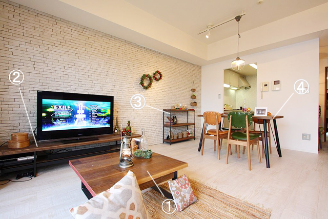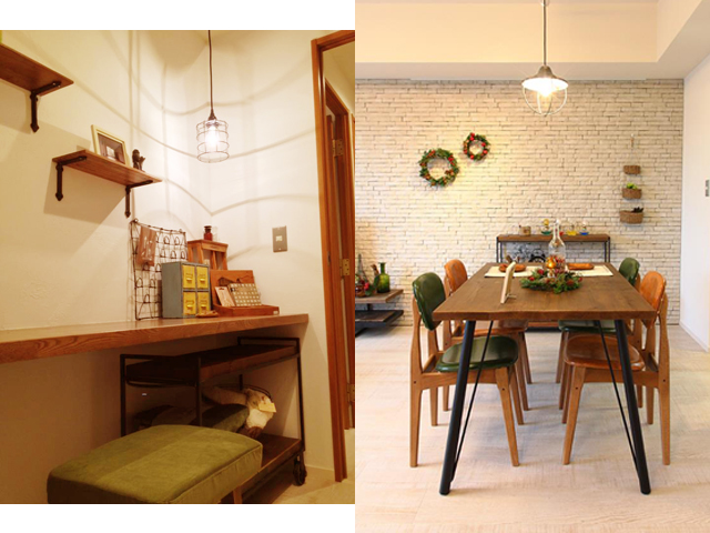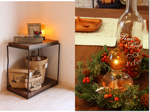 南仏プロバンス地方をイメージしたデザインと質感の部屋に、古材の自然素材が薫るikp家具のスタイルがよく映え、完成イベントではクリスマスに飾り付けされた部屋がまるで北欧の暮らしのよう。