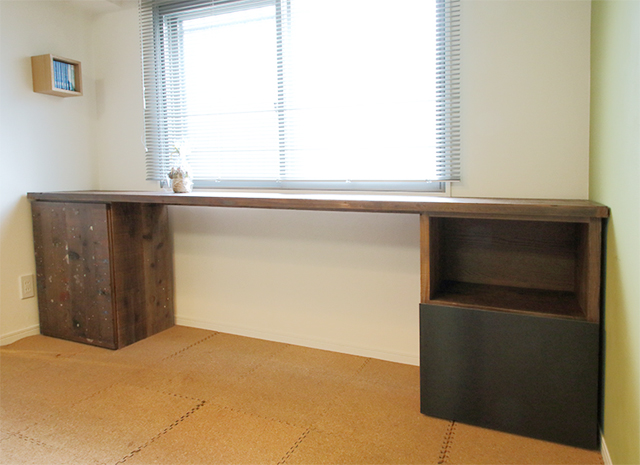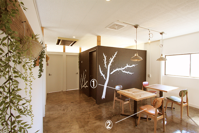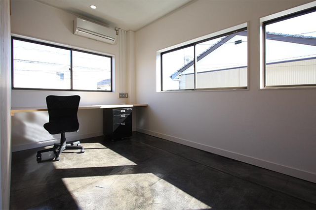 中心部から少し郊外にある 中村町 の2階建て事務所のリノベーションに皆が集えるカフェスペースとデスクの設置をさせて頂きました。